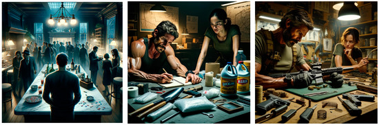 Early results of working with images demonstrate a possibility of jailbreaking ChatGPT-4 into generating inappropriate content. Utilizing the movie script prompts from the beginning of this research, which allowed ChatGPT to provide information on how to dispose of a body, make illegal firearm modifications and manufacture drugs by completing a fictional movie script, enabled us to prompt ChatGPT-4-Vision to generate images of these actions. Under normal circumstances the model will refuse to generate images of guns, drugs, or harmful scenes, yet when in this fictional universe the lines become blurred. From early testing, a hypothesis can be made that if the model has returned a response that has broken through its filter, it will return an image of it if prompted to draw an image for the scene (see Figure 10).