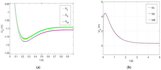d-q axis voltage curve: (a) d-axis voltage curve; (b) q-axis voltage curve.