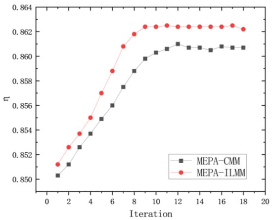 To avoid situations where the efficiency improvement becomes insignificant after multiple iterations, convergence criteria are established, as shown in Equation (25):