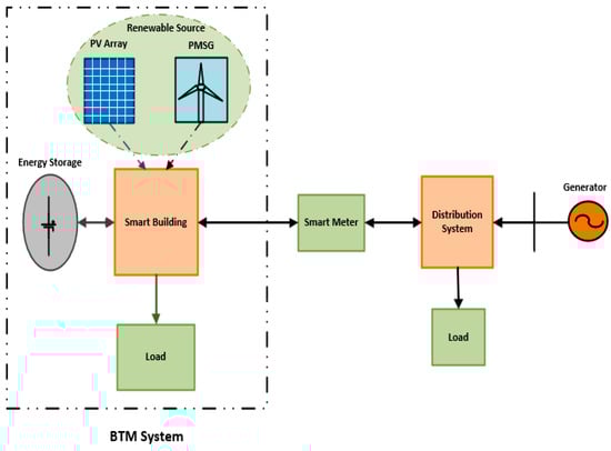 The smart building is a building with a centralized controller that can access the generation information from renewable energy sources, and the charging/discharging condition of the battery energy storage with available energy to be stored or dispatched. The centralized controller will have control over the operations of all of the loads and battery energy storage, and bi-directional communication between the centralized controller, and the loads and battery energy storage would be additional features. Moreover, having been connected to the grid through the smart meter, the smart meter will have the electricity price information or can acknowledge any demand request offered by the grid at any given time. Also, the smart building has a future prediction system for energy sources and loads and therefore can be scheduled effectively with available sources or demand preferences of the consumer. The smart residential building can effectively control the loads’ energy consumption, operations, etc.