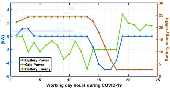 Grid power, battery power and energy during COVID-19 situation.