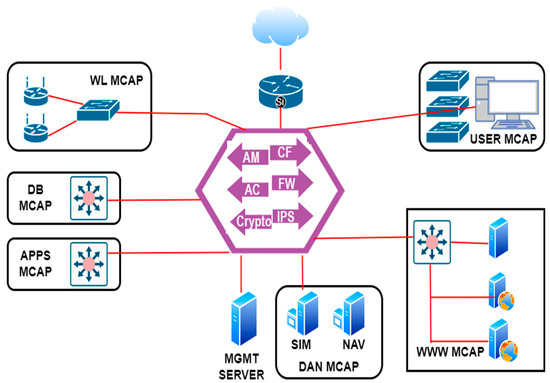 The Forrester NGFW/ZTX model, proposed by Kindervag in 2010, advocates for a centralised engine to segregate the corporate network into micro-core and perimeter (MCAP) segments, as shown in Figure 8. This model aligns with NIST’s resource portal-Based deployment model and provides a simplistic yet effective framework, particularly suitable for organisations with a large number of IoT devices.