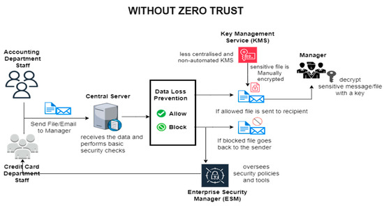 The concept of “Zero Trust” arose from the realisation that conventional security models are based on the out-of-date idea that everything within an organisation’s network can be trusted without further investigation [4]. Because there are not enough fine-grained security controls, users (including threat actors and malicious insiders) can freely move around the network, access sensitive data, and send it out because the network trusts them.