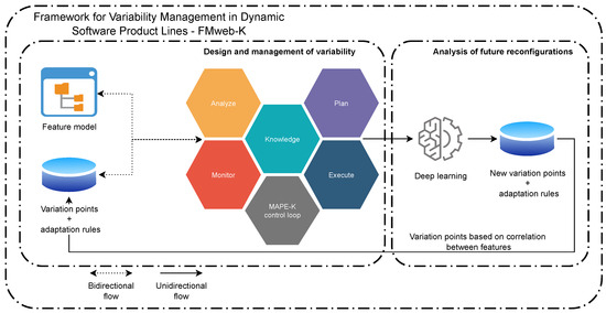 This paper proposes FMweb-K, a variability management-oriented framework using the MAPE-K control loop and deep learning that can be compared with other variability management proposals in DSPL. It is possible to manage a system’s variability through a product line using the following tools.