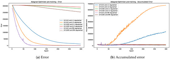 Figure A3 and Figure A4 present the training results of the artificial neural network in the pre-training and training of the neural network with the RMSprop optimizer.