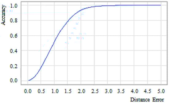 The relationship between prediction error and accuracy of global map points is shown in Figure 13. From Figure 13, it can be seen that when the allowable error is 2.5 m, the predicted positioning accuracy is close to 100%.