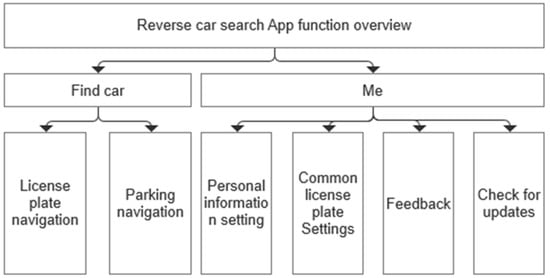 Therefore, in areas such as hospitals, supermarkets, and shopping centers, where there is a higher frequency and density of population movement, integrated services such as convenient parking guidance and reverse car searching are provided. While meeting the needs for convenient transportation, they are important means to increase the passenger flow and improve the satisfaction degree, and has reached consensus in many countries of the worldwide [18]. At present, the possibility can be provided of realizing automation and intelligence management for parking lots within garages following the fast development of machine learning, big data, image recognition, edge computing, and other technologies [19,20]. Nowadays, parking guidance and automatic charge management have been realized to a certain extent for automatic parking management systems, but the reverse car searching system has not been popularized in most garages. In the problem of finding a car with the reverse car searching system, there are still some technical problems to be improved such as vehicle identification, indoor location, path planning, and software development, etc. To explore the indoor location technology and path planning algorithm for management of large- or medium-sized multi-story parking lots, to design a reverse car searching system based software service, simple and, easy to operate, are effective ways to fill up the gap of people’s demand for car services in the Parking Guidance and Information System (PGIS) [21]. Therefore, this paper focuses on system design, user locating in indoor parking lots within a garage, map setting, the route optimization algorithm, and other linking problems, as well as the design of an applicable intelligent garage reverse car searching system, to overcome the weak condition restriction of the GPS signal in large- or medium-sized or underground parking scenarios, in order to meet the needs of car owners for parking in garages and finding intelligent guidance.