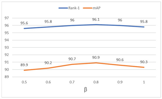 Parameter analysis of . In Figure 4, we analyzed the effect of parameter on the Adaptive Label Smoothing strategy. As source images with the same IDs have the same orientations of critical parts, their label logits should be larger than the mirrored images. The value range of is from 0.5 to 1.0. We can observe that the performance of MPGA-Net reaches mAP and rank-1 with set as 1.0, which means source images and mirrored images are forced to be separated. When decreases, the performance improves and reaches mAP and rank-1 (), which indicates that source images and mirrored images have some identical feature patterns. With a further decrease of , the performance decreases, which indicates that position information is of benefit to feature discrimination.