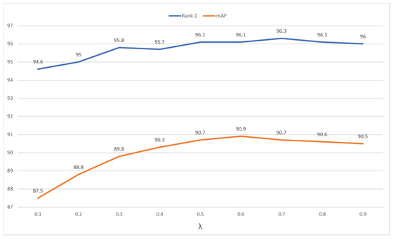 Parameter analysis of . In Figure 5, we analyzed the effect of parameter on the loss function formulation. The performance with greater than 0.5 is better than that with less than 0.5. It is mainly because the cross-entropy loss performs on new labels and the triplet loss performs on source old labels. It also confirms the significance of the orientations of relative positions in our design. Due to the mAP representing performance on all samples, we set to 0.6, with which the performance reaches the highest.