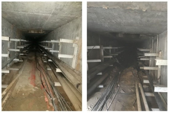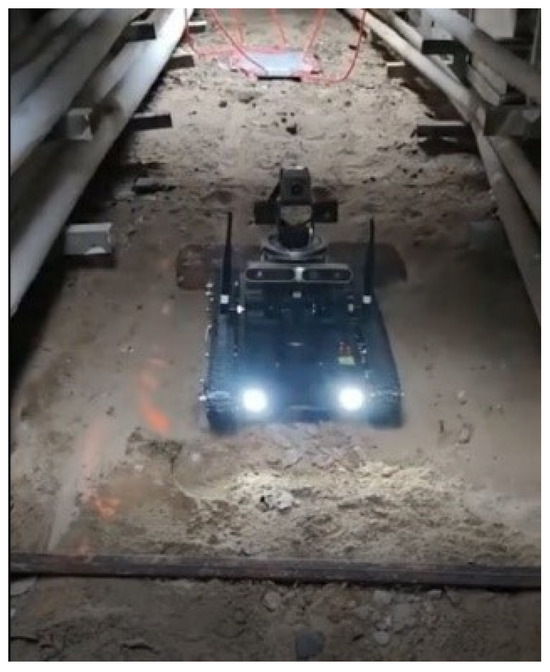 The underground cable trench is narrow and covered with cable supports on both sides, resulting in limited options for the robot’s path. During the inspection process, the robot needs to strictly follow the path to perform the task to avoid damaging the cables or itself by overshooting. In addition, the road surface is mostly sand and gravel, garbage, and other obstacles, and the friction changes drastically, which requires the inspection robot to have a certain level of obstacle-crossing ability [1]. Among the common mobile chassis structures for inspection robots, caterpillar-tracked [2] has simple control and strong obstacle-crossing ability, which is suitable for underground cable trench environments. The path-following problem of a caterpillar-tracked inspection robot in an underground cable trench environment becomes the key to completing intelligent inspection safely and efficiently.