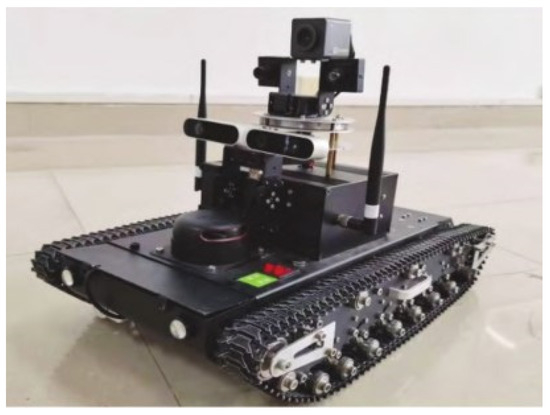The complex environment of the underground cable trench is shown in Figure 1 and the size was 100 m × 1.2 m × 1.5 m. The inspection robot should have a certain degree of obstacle-crossing ability and be able to cope with significant changes in friction. Therefore, the robot chosen was the double-track chassis structure. This structure has good obstacle-crossing and grasping ability, is easy to control, has low power consumption, and is small in size. The shape of the inspection robot is shown in Figure 2, and the actual parameters are shown in Table 1.