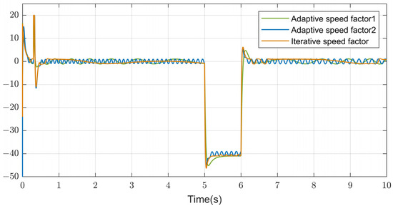The speed factor is a control parameter, similar to k_p, k_d in PD control. The speed factor tightly couples the proportional gain and the differential gain, which makes these two functionally different gains show a coordinated control behavior with the same goal during the control process, and effectively improves the gain robustness and anti-disturbance robustness of the control system. Theoretically, the larger the speed factor , the faster the dynamic response of the system and the stronger the ability to anti-disturbance. However, if the speed factor is too large, the control force will be too large, and the system will generate overshoot and oscillation. Therefore, in the initial stage of a dynamic response, due to the large tracking error, the speed factor is required to take a smaller value. After entering the steady-state, the speed factor is required to take a larger value to improve the ability of anti-disturbance, so an adaptive speed factor based on the rate of change of the error is designed for this purpose.
