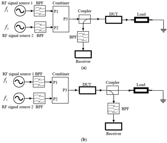 The International Electrotechnical Commission (IEC) in [14] proposed two standards for passive intermodulation testing, the reflection and transmission methods, and the system structure of these two methods is shown in Figure 2.