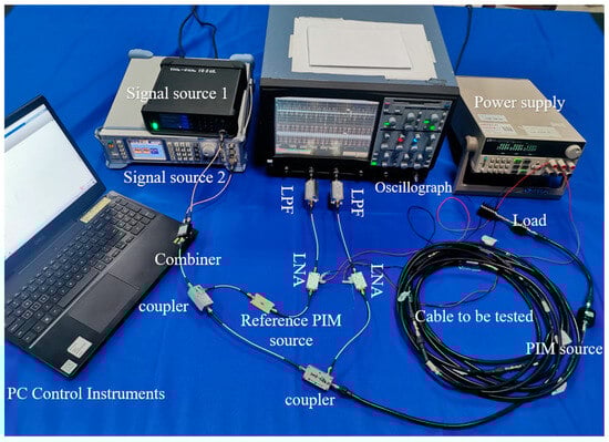 PIM localization experiment system. The oscilloscope used in the experimental system is LeCroy DDA-3000, the signal source is R&S®SMB100A, and the power supply is from ITECH.