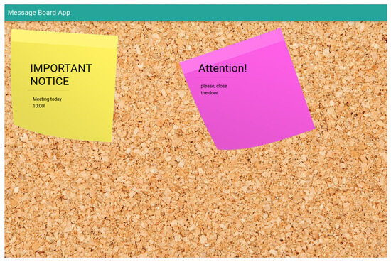 In the third study, to test the specific framework principles presented in this paper, a message board application was also developed. Specifically, its main functionality is based on a remotely controllable web application which works as a dynamic display of short notifications or memos (illustrated in Figure 8) contained in its local memory.