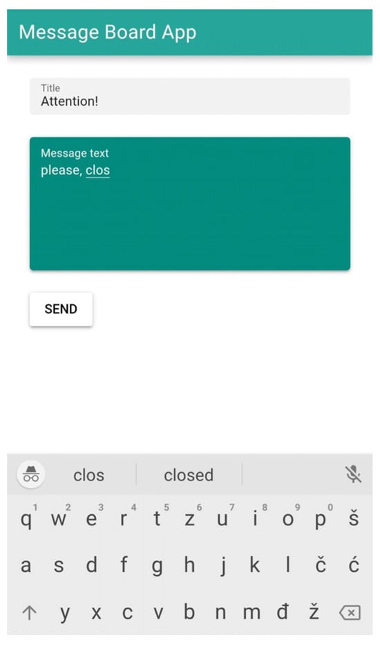 Moreover, the remote controller is realized through a graphic user interface (GUI) offering the functionality of typing in a title and message body text and sending it to the controlled application (see Figure 9). Both services contain a) a web application with a graphic user interface and b) an instance of a class extending RCA and Controller, respectively. Also, both are running on the same host, but on different paths. Finally, the services communicate exclusively through an Environment instance (i.e., via their and the Environment’s respective sockets) instantiated at an entirely different server address and independent of the message board application.