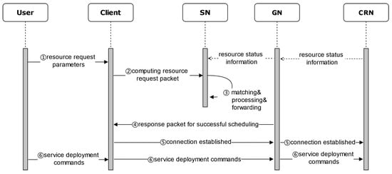 Taking the overall structure of IPCRSA shown in Figure 1, along with its various entities, as an example, this section describes the typical process of computing resource scheduling in IPCRSA, which is illustrated in Figure 5 below.