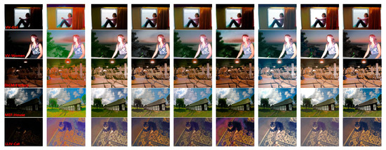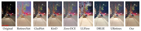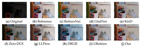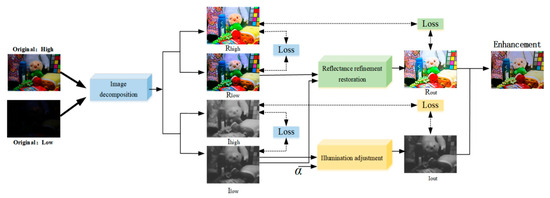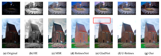 - Wu, W.; Weng, J.; Zhang, P.; Wang, X.; Yang, W.; Jiang, J. Uretinex-net: Retinex-based deep unfolding network for low-light image enhancement. In Proceedings of the IEEE/CVF Conference on Computer Vision and Pattern Recognition, New Orleans, LA, USA, 18–24 June 2022; pp. 5901–5910. [Google Scholar]