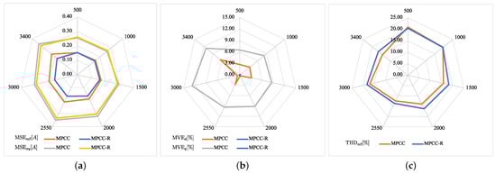 Performance behaviour of stator currents (a) MSE [A] and MSE [A]; (b) MVEd [%] and MVEq [%]; (c) THD [%], from 500 [rpm] to 3400 [rpm] for MPCC and MPCC-R.