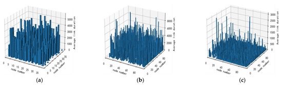 As can be seen from Table 2, the average link duration percentage greater than the duration of 600 s reaches 72.76% and 36.40% on the datasets ITC and MIT, respectively. Thus, only the link duration is considered in these two datasets; we can construct the node attribute vector through Formula (2). On the Infocom06 dataset, the average link duration greater than duration 240 s accounts for 10.77%; therefore, the attribute vector should take into account the link frequency, which can be constructed by Formula (3).