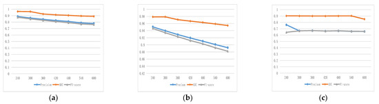 As shown in Figure 8, on ITC and MIT datasets, evaluation metrics decrease when the slice size increases. On Infocom06 dataset, evaluation metrics Precision and AUC are the maximum at T = 240 s, while F1-score reaches a maximum at T = 360 s. Therefore, the slice size on ITC, MIT, and infocom06 is set to 240 s.