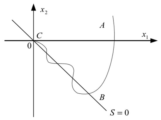 In general, the motion of the sliding mode variable structure control system consists of two parts, as shown in Figure 2. Segment AB in the figure is the motion before reaching the sliding mold surface, which is a state converging to the sliding mold surface and is called converging mode; segment BC is the motion near the sliding mold surface, which passes through the sliding mold surface a finite number of times and is called sliding mode.