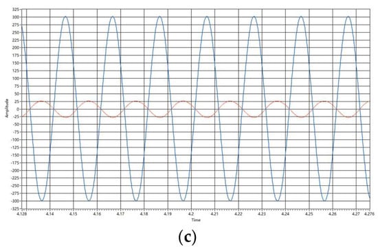 Figure 16 shows the experimental waveforms of the AC-side phase A voltage and current at steady state, the red line represents the AC side current value of phase A, The blue line represents the AC side voltage value of phase A. It can be seen that the voltage and current waveforms under the V-SMC control strategy have the highest sinusoidal degree and can better suppress harmonics, and the voltage and current waveforms under the PI control strategy have a poor sinusoidal degree, which is consistent with the simulation analysis results.