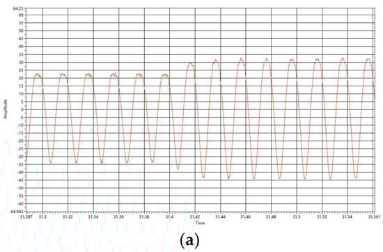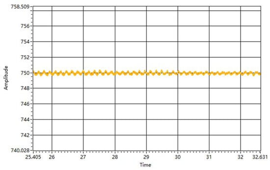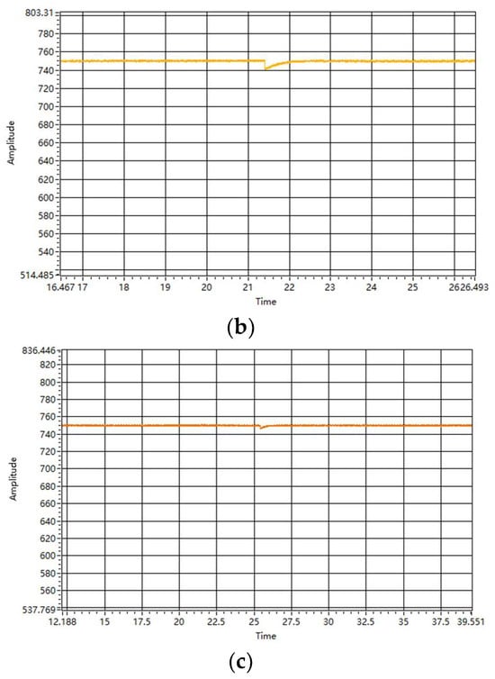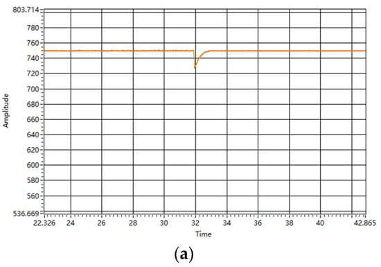 Figure 19 shows the DC-side voltage waveforms under the three control strategies: under the PI control strategy, the voltage has a voltage jitter value of about 25 V and reaches a steady state in about 0.08 s; under the SMC control strategy, the voltage has a voltage jitter value of about 10 V and returns to a steady state in about 0.1 s; under the V-SMC control strategy, the voltage has a voltage jitter value of about 2 V and reaches a steady state in about 0.04 s; and under the V-SMC control strategy, the voltage has a voltage jitter value of about 2 V. and reaches the steady state in about 0.04 s. Although there is a difference between the voltage fluctuation value shown in the experiment and that shown in the simulation, the difference is not large, and at the same time, the control effect under the V-SMC control strategy is the best, so the experiment can reflect the superiority of the control strategy proposed in this paper.