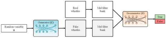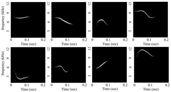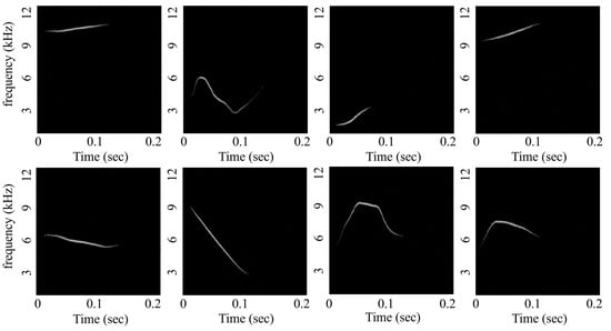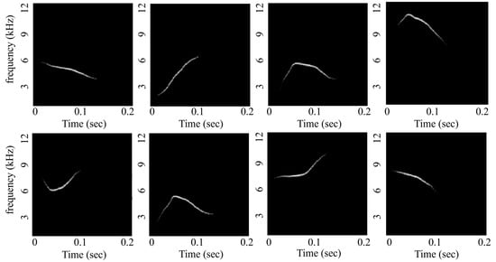 For the training of the proposed WhistleGAN, the whistles from the “Watkins Marine Mammal Sound Database (WMMSD)”, and “voice in the sea and discovery of sound in the sea” were used [24,25]. The data of about 239 single whistles were increased to 10,000 whistles by changing the time and frequency and used as the training set.