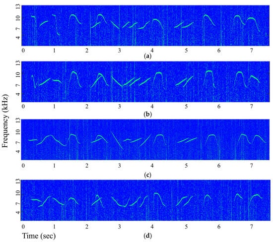 In general, two methods are used to obtain the dolphin whistles for the biomimetic UWA covert communication: one method records the real dolphin whistles by themselves and the other utilizes the published data set recorded by others. However, recording dolphins’ whistles is challenging due to their movement, which can cover hundreds of kilometers [18,19], and the quantity of published data is limited because dolphin whistles contain important marine environment information of some countries.