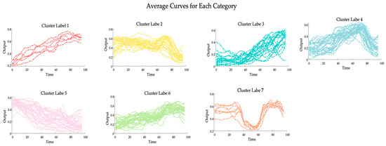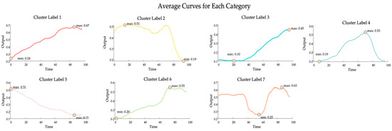 Based on the clustering results, the seven types of daily wind power output curves with significant peak-to-valley differences are as follows: rapid rise type, rapid decline type, slight decline followed by rapid rise type, large amplitude rise then fall type, large amplitude fall then rise type, stable decline followed by rapid decline type, and stable rise followed by rapid rise type.