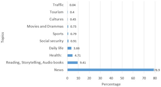 The clean corpus consists of all audio files after being preprocessed as described above. Specifically, the LSVSC consists of 100 h and 30 min of clean utterances, which covers various topics such as news, reading, audio books, movies, sports, healthcare, traffic, tourism, etc. Figure 1 illustrates the distribution of the LSVSC according to ten topics. News is the dominant topic, comprising 78.5% of the total dataset. The topic of reading, storytelling and audiobooks accounts for 9.41%. Health and Daily life topics represent 4.71% and 3.66%, respectively. Other topics collectively make up less than 1% each, with tourism being the least at about 0.4%. The clean LSVSC is manually transcribed by a group of crowd workers and double-checked by another group of crowd workers to ensure that the errors in the transcription are corrected. Finally, the text is saved in file as the UTF-8 format.