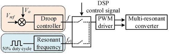 Similar to the control method of mode 1, when the input voltage of the Sigma converter changes between the voltage ranges in (14) and (15) in mode 2, the LLC–DCX converter adopts open-loop control. Whereas, multi-resonant converters #1 and #2 both adopt closed-loop droop control to regulate the output voltage.