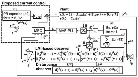 Figure 2 shows the proposed frequency-adaptive grid voltage sensorless controller, in which denotes the grid current error, , , and and are the gains of the proposed LMI-based observer.