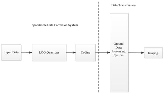 The logarithmic compression algorithm (LCA) is a lossy compression method employing non-uniform quantization. It uses amplitude non-uniform quantization to compress the original data; this is similar to the block adaptive quantization algorithm. In comparison to the BAQ algorithm, it has no block, no average mean, and no quantization code table [14]. The LCA can be implemented on a single FPGA, uses few resources, and has good real-time performance.