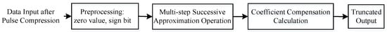 The symbol indicates that the data are rounded down. ini_data represents the 20-bit signed data after radar pulse compression, and compress_data1 represents the compressed data.