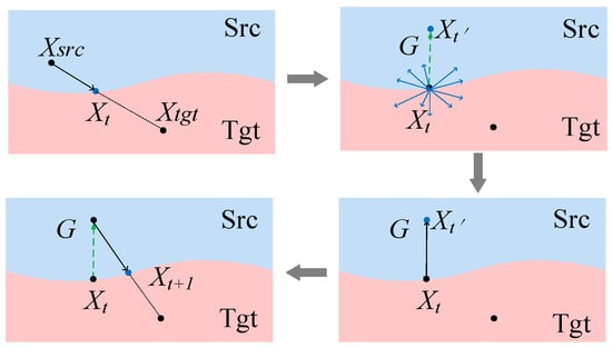 The iterative process of generating adversarial examples is depicted in Figure 1, where the source image and the target image , labeled with a malicious category , are selected. Initially, a binary search is performed on both images to derive the initial image , which is misclassified as malicious, following the procedure described in Equation (3):