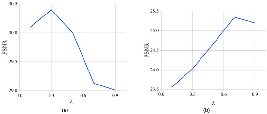 Figure 7. Sensitivity of the hyperparameter to the strength of the convolutional output in network models with different numbers of AEF layers. (a) The complete model. (b) The model with 2 AFE layers in the encoder of the MPNet.
