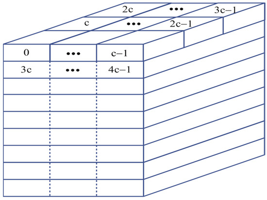 When the convolution kernel size and the convolution step size , at this time the effective input feature width , the regular feature block is used, and the organization of input feature cache is expressed in Equation (3).