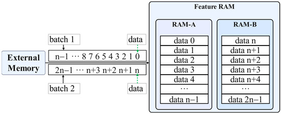 According to the characteristics of RMC, it is necessary to simultaneously obtain feature data for two adjacent addresses. According to the design of the feature cache, the feature data with consecutive addresses obtained from external storage are alternately mapped to RAM-A and RAM-B, as shown in Figure 9.