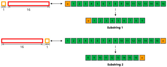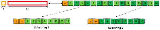 When , if 10 input feature points are obtained, the calculation can be made for the case of and . Therefore, similarly, by selecting two pieces of neighboring 16-byte length data, a portion of the data is selected for splicing, as shown in Figure 17.