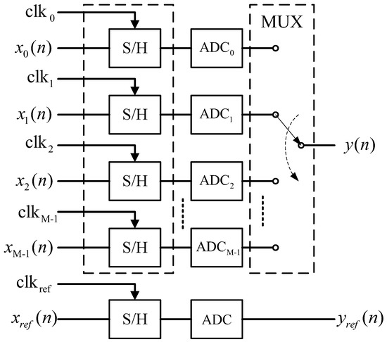 Assuming that the prior calibrations with the help of a reference ADC [24] have been made for other mismatches (i.e., offset and gain mismatches), we only need to focus on the calibration of the timing mismatch. Figure 1 shows the structure of the M-channel TIADC with the reference channel. The output of the optimal M-channel TIADC system can be expressed as