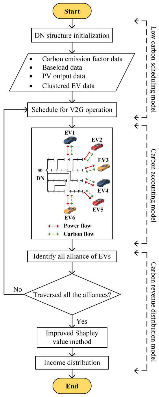 In response to these issues, this study proposes a carbon accounting model and revenue distribution method for EVs. The model employs carbon emission flow and the Shapley value method for equitable distribution of carbon reduction contributions. The specific contributions include the following: