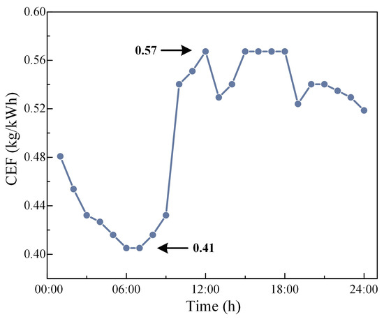 Different power generation technologies utilize various energy sources and have differing efficiencies in converting these energies into electricity, resulting in varying amounts of carbon dioxide emissions. The carbon emission factors for each type of power generation method are presented in Table 2 [46]. By analyzing the typical weekday load situation in Guangdong Province in 2021, the carbon emission factor data for the power grid over 24 h can be calculated.