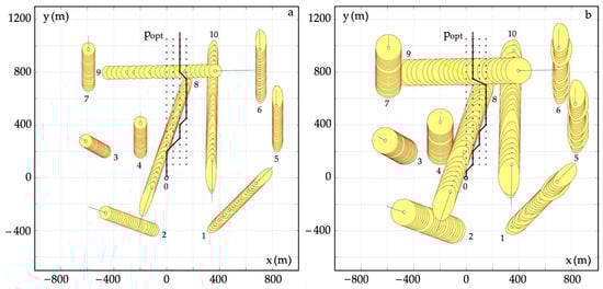 The sensitivity of the time-optimal autonomous driving path to the radar perception of the collision risk rk of objects is shown in Figure 9.