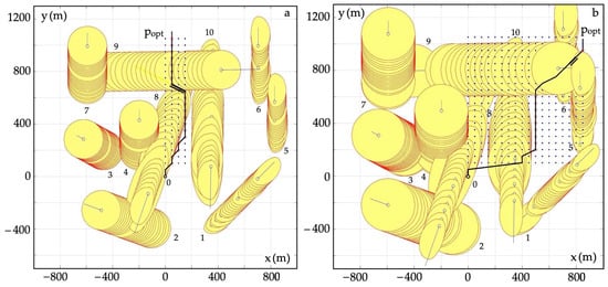 Figure 7 presents the optimal safe path of our autonomous vehicle in poor object movement conditions when ds = 150 ÷ 200 m.