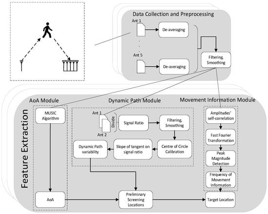 - Preprocessing of Extracted Target Motion Signals: In this initial module, the extracted motion signals undergo preprocessing to eliminate the effects of static multipath and direct signals. This is achieved by removing the time-averaged values from the signals, thereby enhancing the sensitivity to dynamic variations.