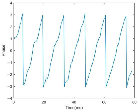 Subtracting the mean signal value is an efficient technique that involves mitigating DC offset or static clutter effects. This is achieved by calculating the average signal value and subtracting it from the original signal. Since the target’s velocity can be reasonably assumed to remain constant over short time intervals, its movement exhibits periodicity within these brief periods. Consequently, the data also manifest periodic characteristics during these intervals. In contrast, multipath reflections originating from static objects and the surrounding environment exhibit minimal or irregular motion. DC signals inherently lack phase information, and the data distribution within their corresponding distance units lacks periodicity.