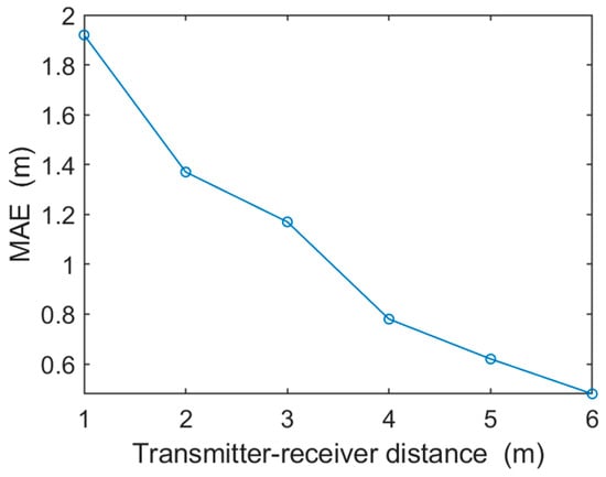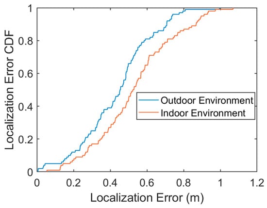Conclusively, WideSee [14] opts for LoRa technology within a 6 m × 8 m area, showcasing an error of 0.52 m using a lone receiver. It can be observed that our algorithm achieves decimeter-level positioning accuracy within a large perceptual range, comparable to state-of-the-art techniques. Importantly, our algorithm requires only a single receiving antenna and accomplishes target localization on one side of the target area.