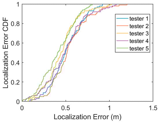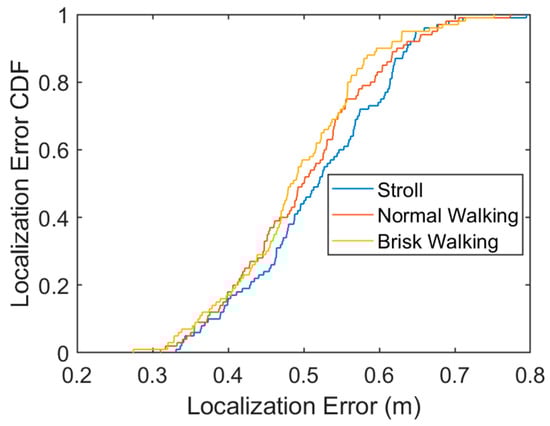 CDF of the localization error under different walking directions.
